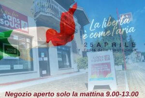 25 aprile negozio aperto la mattina dalle 9.00 alle 13.00