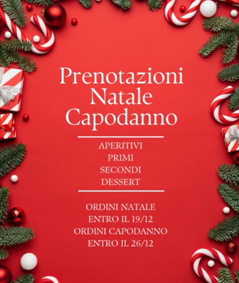 SPECIALE MENU DELLE FESTE PRENOTAZIONI NATALE E CAPODANNO APERITIVI Panettone gastronomico farcito Pizzette sfoglia Torte salate Piadine ripiene Tigelle Vol au vent PRIMI Lasagne al ragù di manzo Lasagne alle verdure Lasagne ricotta e spinaci Cannelloni al ragù Cannelloni ricotta e spinaci Paella valenciana Tortellini di carne Tortellini di zucca Ravioli alla bagossa Ravioli ricotta […]